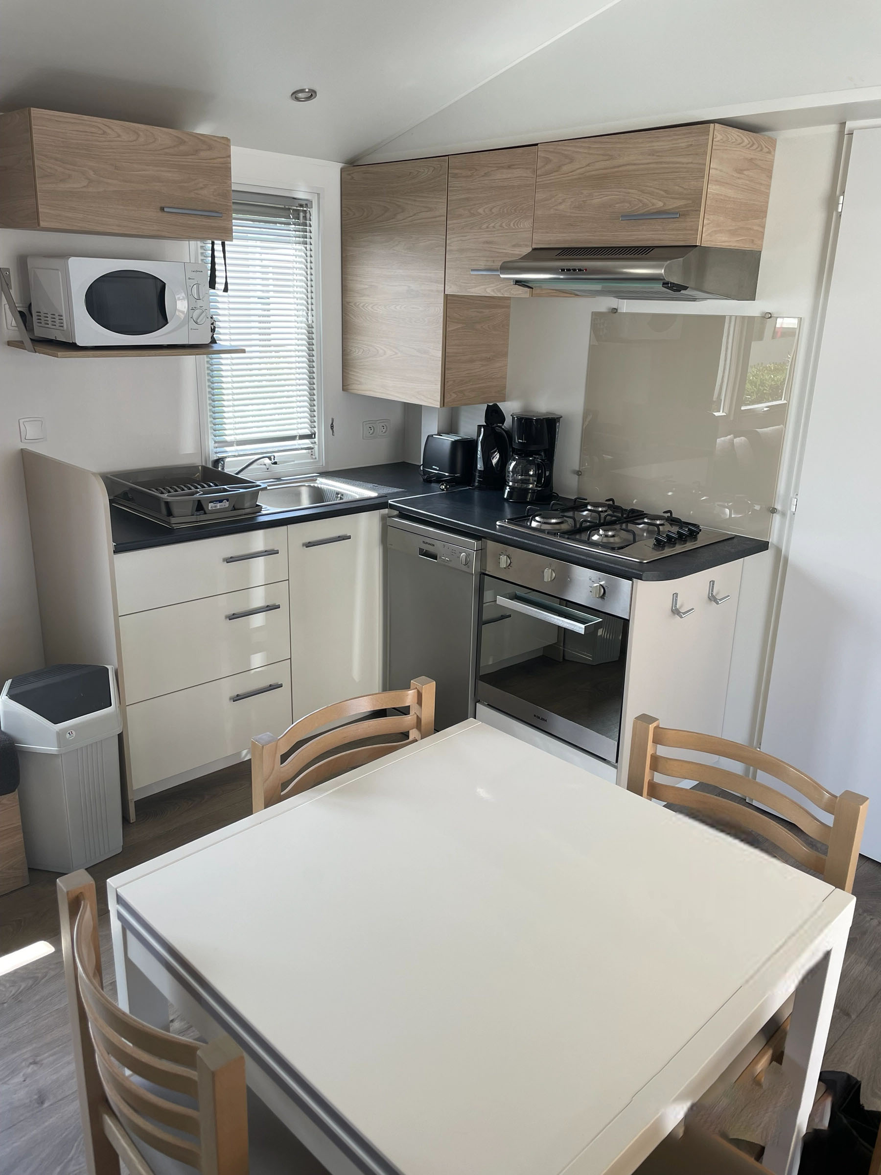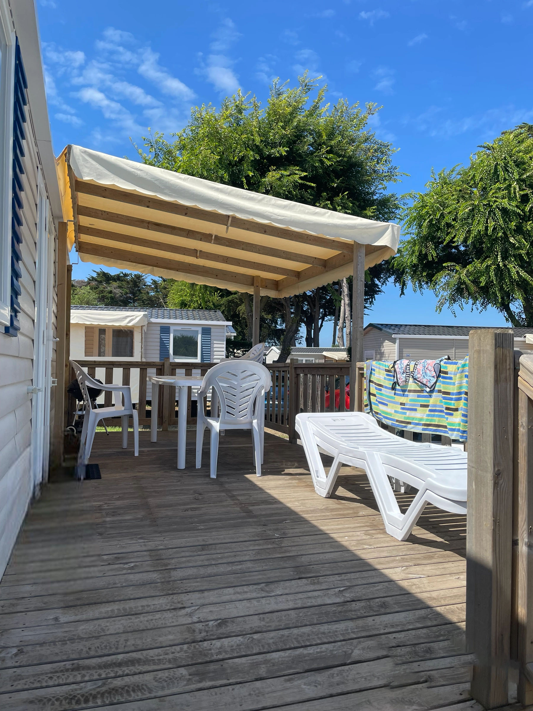 Mobil-home lumineux, entièrement équipé, à deux pas de la mer. Profitez d’un cadre naturel, d’une terrasse ensoleillée et de tout le confort pour 4 à 8 personnes.